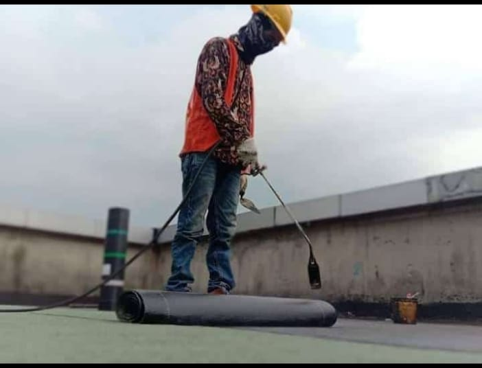 Perlindungan maksimal dak beton dari kebocoran dengan metode pembakaran membran tahan air.
